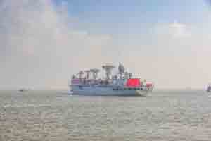 远望3号船扬帆出航…