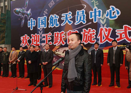 王跃所在单位中国航天员中心在航天城举行隆重仪式欢迎王跃凯旋。