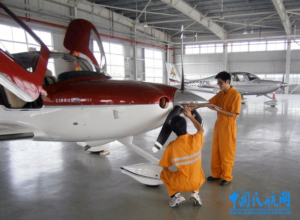 在珠海商用机库,记者看到机务人员正在对飞机进行日常检查和保养。据介绍,其中一架为珠海商用购买,另一架为私人购买交该中心托管。西锐SR22飞机号称"空中宝马",是全球最为畅销的小飞机,性能卓越且操作简单,该飞机最大亮点是装备了整机降落伞一旦遇到飞行紧急情况,机舱内人员不必跳伞,"自动打开的降落伞将吊着飞机安全着陆"。此外,飞机操作非常简单,普通百姓可以轻松学会驾驶。