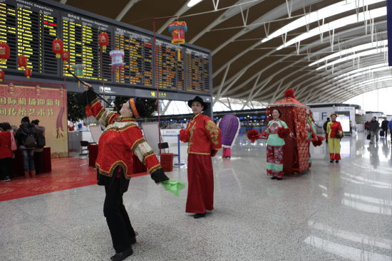 12月27日至29日,时值2012年新年来临之际,上海浦东国际机场在2号航站楼出发中央大厅内举办迎新年民间传统艺术节,营造浓厚的节日气氛,向中外旅客展示中国丰富多彩的民间传统艺术,让中外旅客感受中国传统文化的魅力。