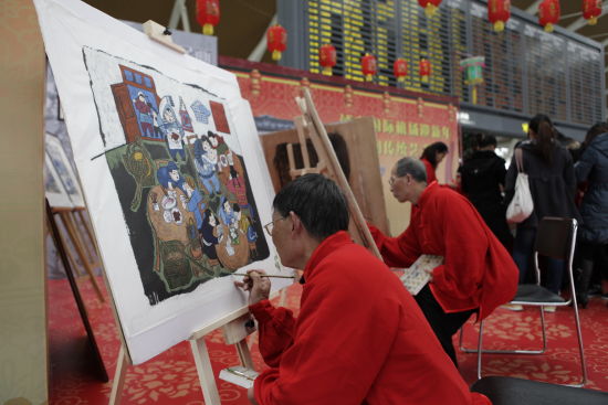 此次活动展示的内容主要有上海西郊农民画、新泾手撕纸、手工灯笼的现场表演制作以及极具传统特色的抬花轿迎亲、河蚌精等民间节庆节目表演,吸引了不少旅客驻足观看和亲身参与。民间绘画艺人现场作画演示“西郊农民画”制作过程,让旅客近距离感受到“西郊农民画”独特的艺术魅力,手撕纸艺人华兴富现场演示手撕灯笼、生肖、人物剪影等撕纸作品,让旅客体验到撕纸快、巧、灵的艺术表演特点。民间艺人还不时与过往旅客进行互动,让旅客参与手撕纸、扎兔子灯及抬花轿环节,并赠送小灯笼、中国节、红辣椒等中国特色小礼品,让旅客切身体验中华民族的民俗文化教育,零距离感受“我参与、我快乐”的现场氛围。