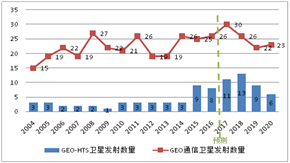 ▲ 全球2004-2020年GEO-HTS卫星发射数量统计与预测