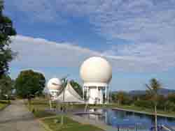 三亚中科院遥感研究所内分布着多个球状卫星信号接收天线
