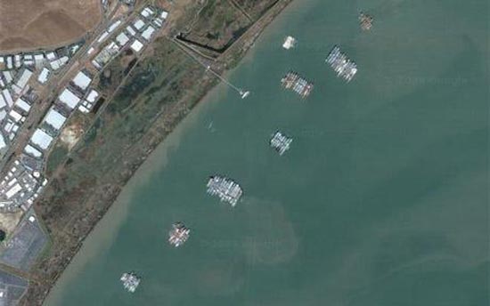 据英国《每日电讯报》报道,谷歌地图日前公布的卫星照片曝光了美国三处后备舰队基地的内幕,170多艘各种舰只被运输部海洋管理局部署在弗吉尼亚州的詹姆士河、得克萨斯州的博蒙特以及加州的遂深湾基地中。这些舰队被称为国防后备舰队,其主要任务是在战时或者国家遭遇紧急情况时为美军提供支援。