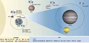 (点击放大)图1:中国过去、现在和未来的太空任务及其目标。 来源: Earth, NASA; Jupiter, NASA/JPL/University of Arizona; Io, NASA/JPL/University of Arizona; Mars, NASA/JPL/Malin Space Science Systems; Asteroid, NASA/JPL; Moon, NASA。