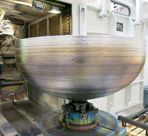 卫星燃料箱体必须既坚固又轻便,能够承受严峻的发射和长达数十年的空间真空任务。这使得钛成为理想的材料,但是采购直径为4英尺,厚度为4英寸的钛锻件可能需要一年或更长时间,这使其成为圆顶成为其中最具挑战性和最昂贵的部件。传统的制造技术也意味着超过80%的材料浪费了。洛克希德技术人员使用电子束增材制造在丹佛的一家公司工厂生产这些圆顶。