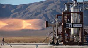 波音 CST-100“星际客机”飞船发射中止发动机2016年一次试车画面。对整个发射中止系统进行的一次静态点火试车在最后阶段出现了推进剂泄漏